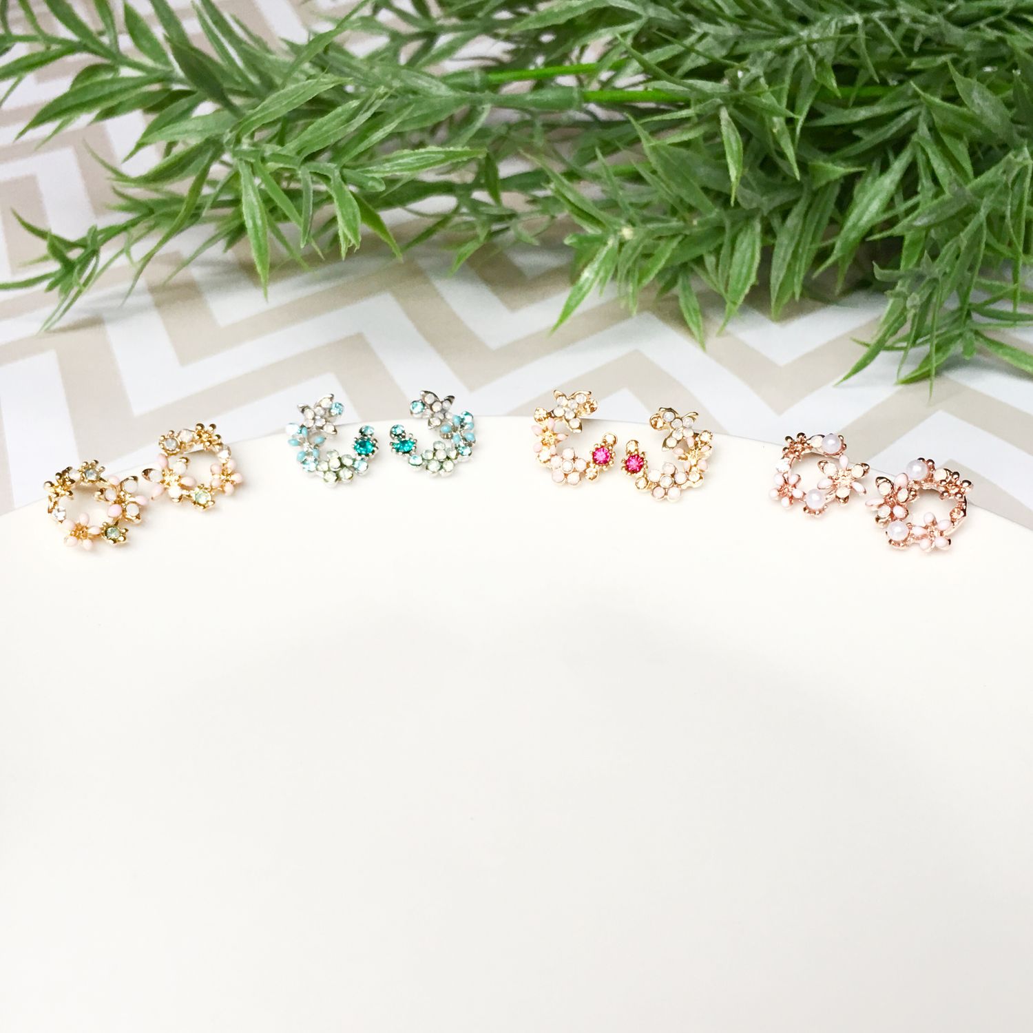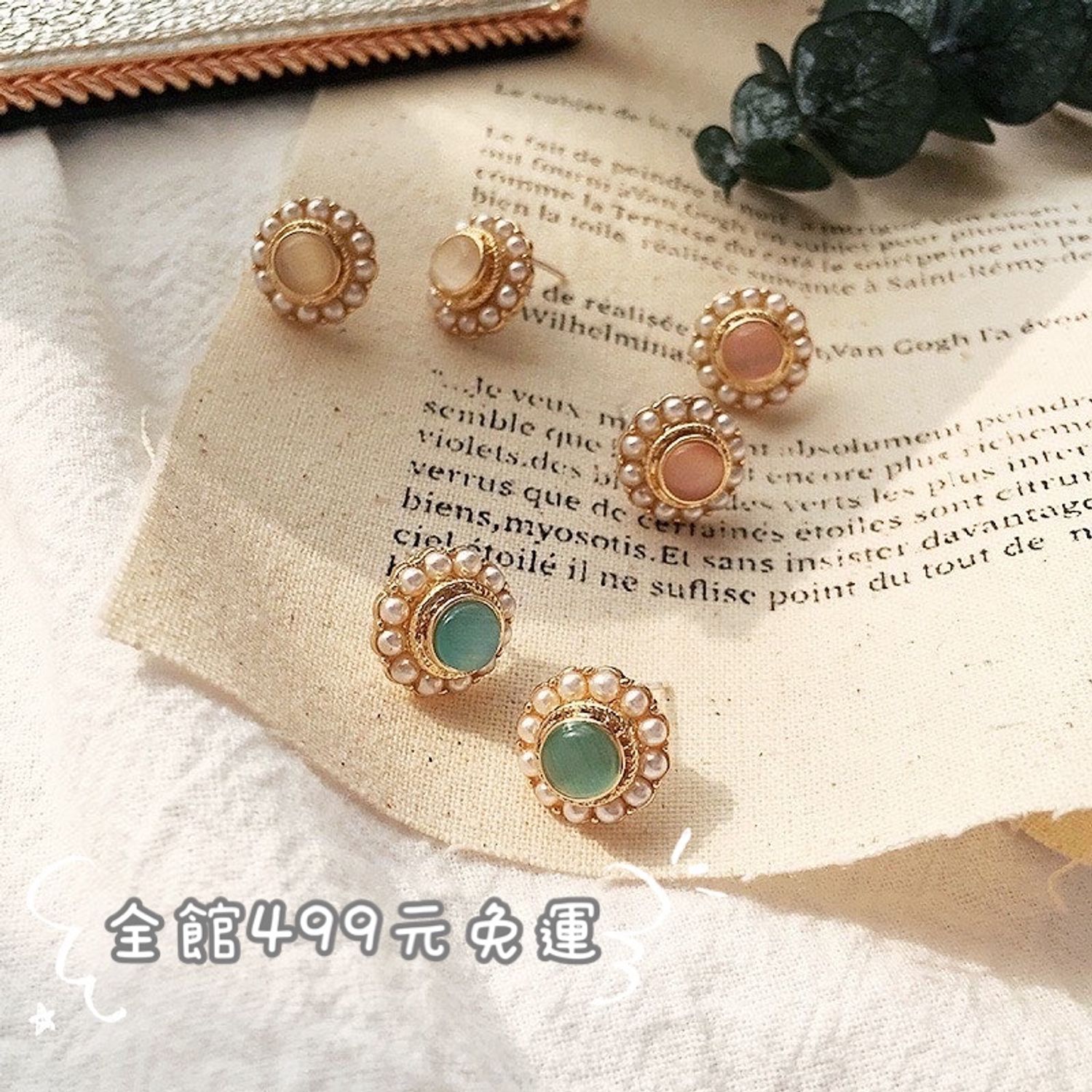 抗敏鋼針-粉色春花珍珠綴飾耳環