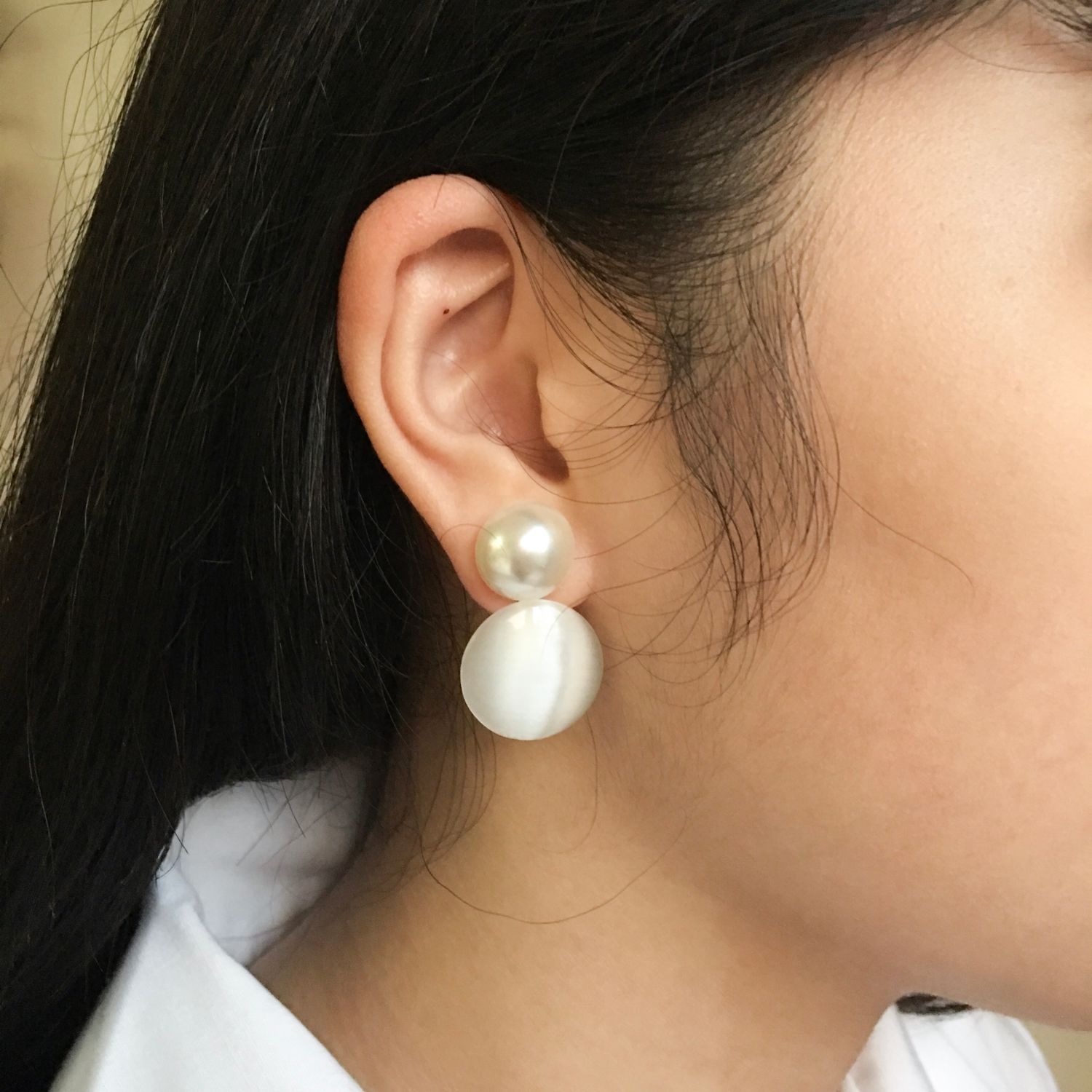 18k金電鍍-偽後扣式黑白小花珍珠耳夾耳環